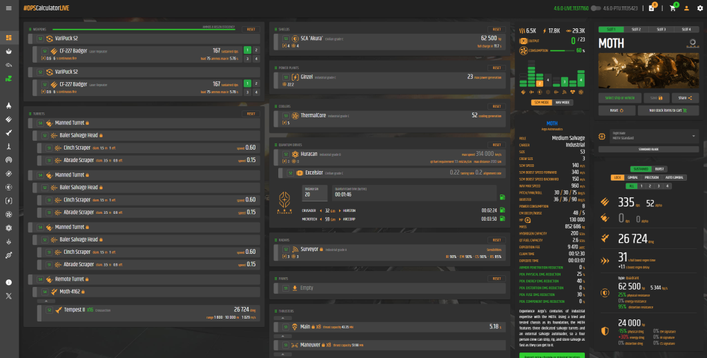 A ship outfitting tool with up-to-date ship calculations for things like weapon damage, energy requirements, and component signatures.